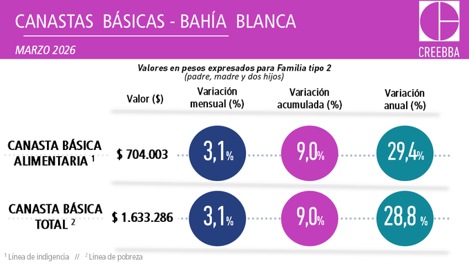 Una familia tipo (2 adultos y 2 niños) necesitó $1.633.000 en marzo para no ser considerada pobre,...