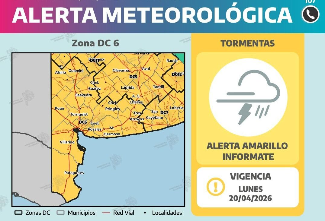 Durante el día de hoy, hay probabilidades de lluvias y tormentas aisladas de variada intensidad, algunas localmente fuertes. Las mismas estarán acompañadas principalmente por abundantes precipitaciones en cortos períodos, algunas ráfagas de viento que pueden alcanzar los 70 km/h de forma aislada, con ocasional actividad eléctrica y granizo de forma muy puntual. Se estiman valores de precipitación acumulada entre 20 y 70 mm.