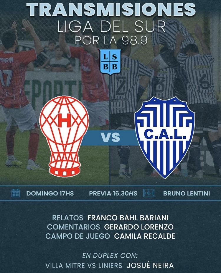 El domingo, por el torneo de Primera, Huracán jugará contra Libertad en el Bruno Lentini, con transmisión de Ciudad Portuaria; mientras que Villa Mitre se medirá con Liniers.